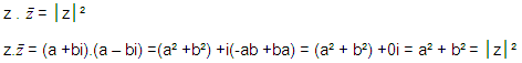 • O produto de z por seu conjugado é igual ao quadrado do
