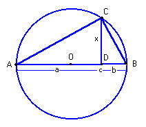 ou seja, o comprimento de CD é a raíz quadrada do produto dos comprimentos de CA e CB.